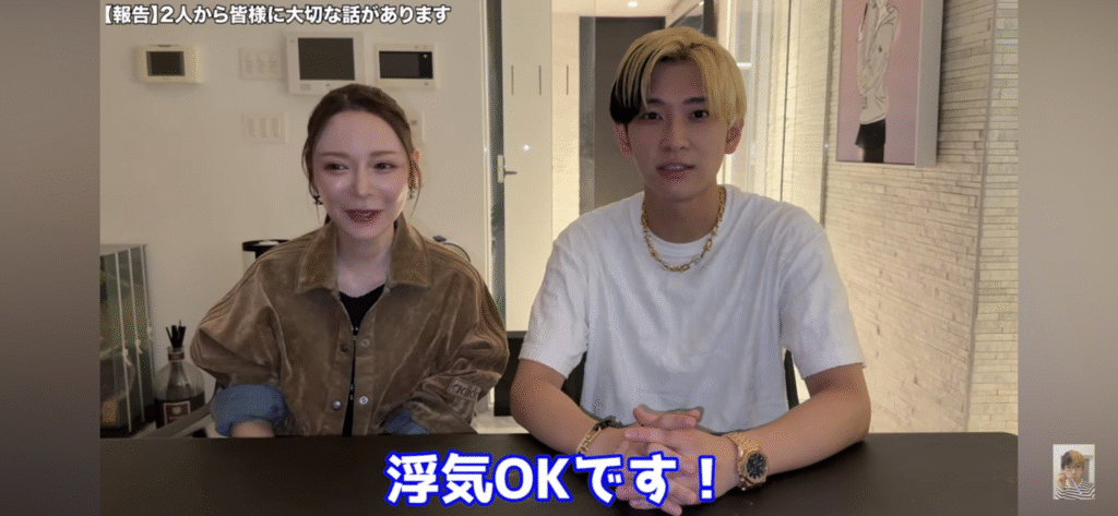 宣言の核心は、ヒカル夫妻の「幸せの形」追求。動画で「お互いに浮気オッケー」と明言しました。