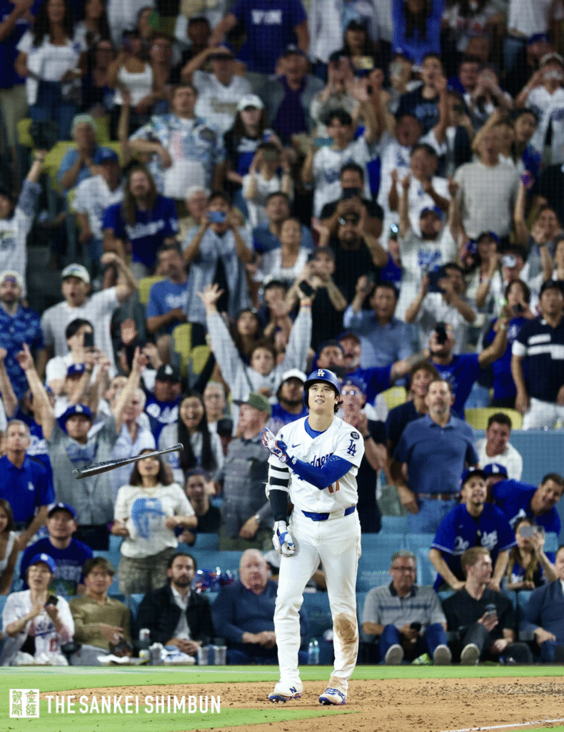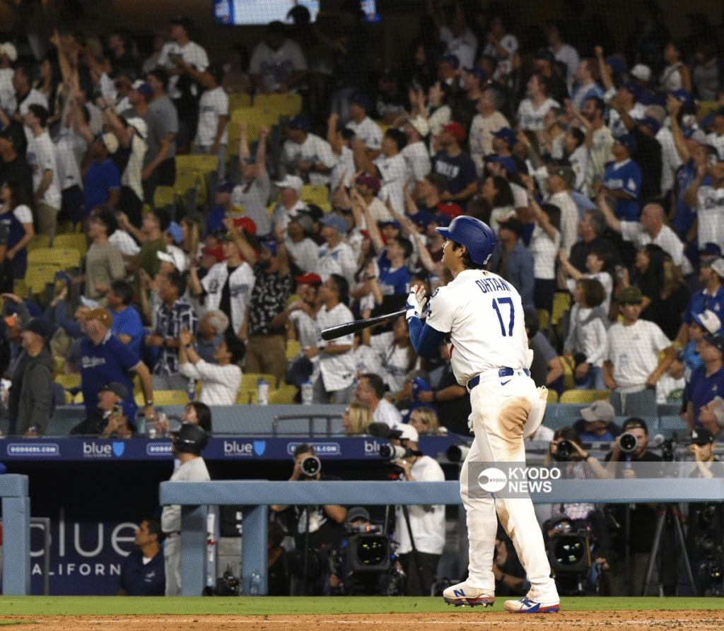 ベーブ・ルースら伝説の選手を超える二刀流の偉業に、ドジャー・スタジアムは熱狂に包まれた。