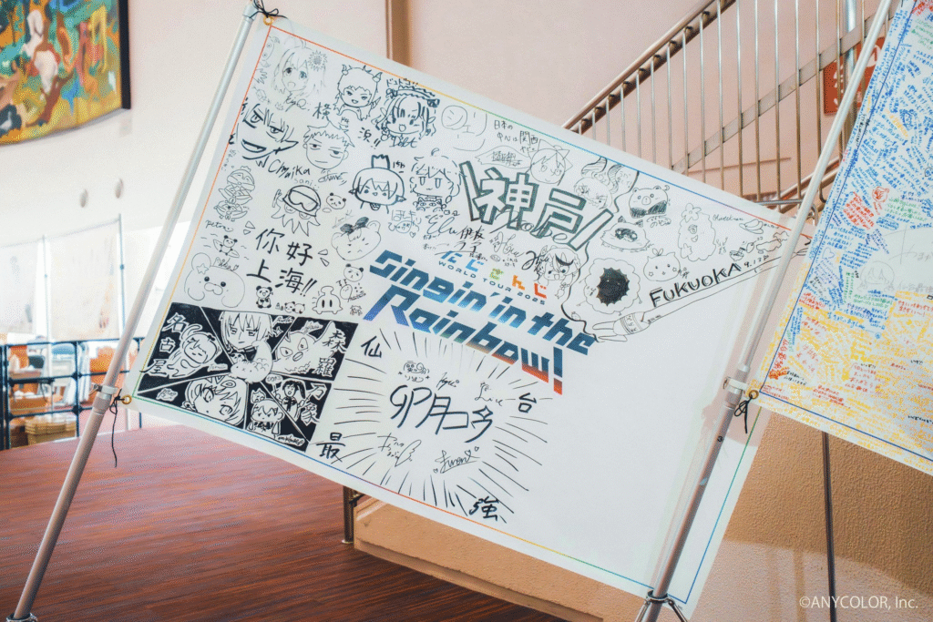 出演ライバー作の「てるてる坊主」の展示をはじめ、他にも「#SitR福岡 出演者サイン入りフラッグ」などを展示しているようです。