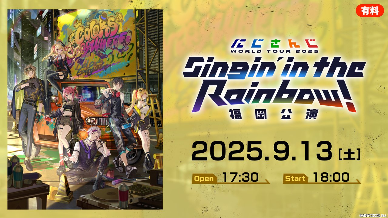 にじさんじ WORLD TOUR 2025 Singin’ in the Rainbow!にじさんじ史上最大規模となるライブツアー「にじさんじ WORLD TOUR 2025 Singin' in the Rainbow!」開催! VTuberグループ「にじさんじ」7周年を記念した史上最大規模のライブツアー開催が決定!国内7公演のツアー情報を先行解禁!! | ANYCOLOR株式会社(ANYCOLOR Inc.)ANYCOLOR株式会社は、2017年5月2日に設立されたエンターテイメント系スタートアップです。私達は「エンタメ経済圏」が加速する新時代の切り込み役として、世界の人々の日常に魔法をかけていきます。 【福岡公演】Singin’ in the Rainbow!◇◆◇公演の冒頭は無料でご視聴いただけます◇◆◇ にじさんじ WORLD TOUR 2025 Singin’ in the Rain... にじさんじ史上最大規模・5年ぶりのライブツアー「にじさんじ WORLD TOUR 2025 Singin’ in the Rainbow!」5/10~、ニコ生で日本公演全7公演&企画番組を国内独占配信株式会社ドワンゴのプレスリリース(2025年4月18日 12時00分)にじさんじ史上最大規模・5年ぶりのライブツアー「にじさんじ WORLD TOUR 2025 Singin’ in the Rainbow!」5/10~、ニコ生で日本公演全7公演&企画番組を国内独占配信